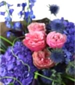 Mystic Violet Ortanca Buketi, morun gizemini ve pembe tonların enerjisini bir araya getiren zarif bir tasarımdır. Mavi-mor ortancalar, asil görünümüyle dikkat çekerken; pembe güller ve mor lavanta dokunuşları bukete romantik bir denge kazandırır.