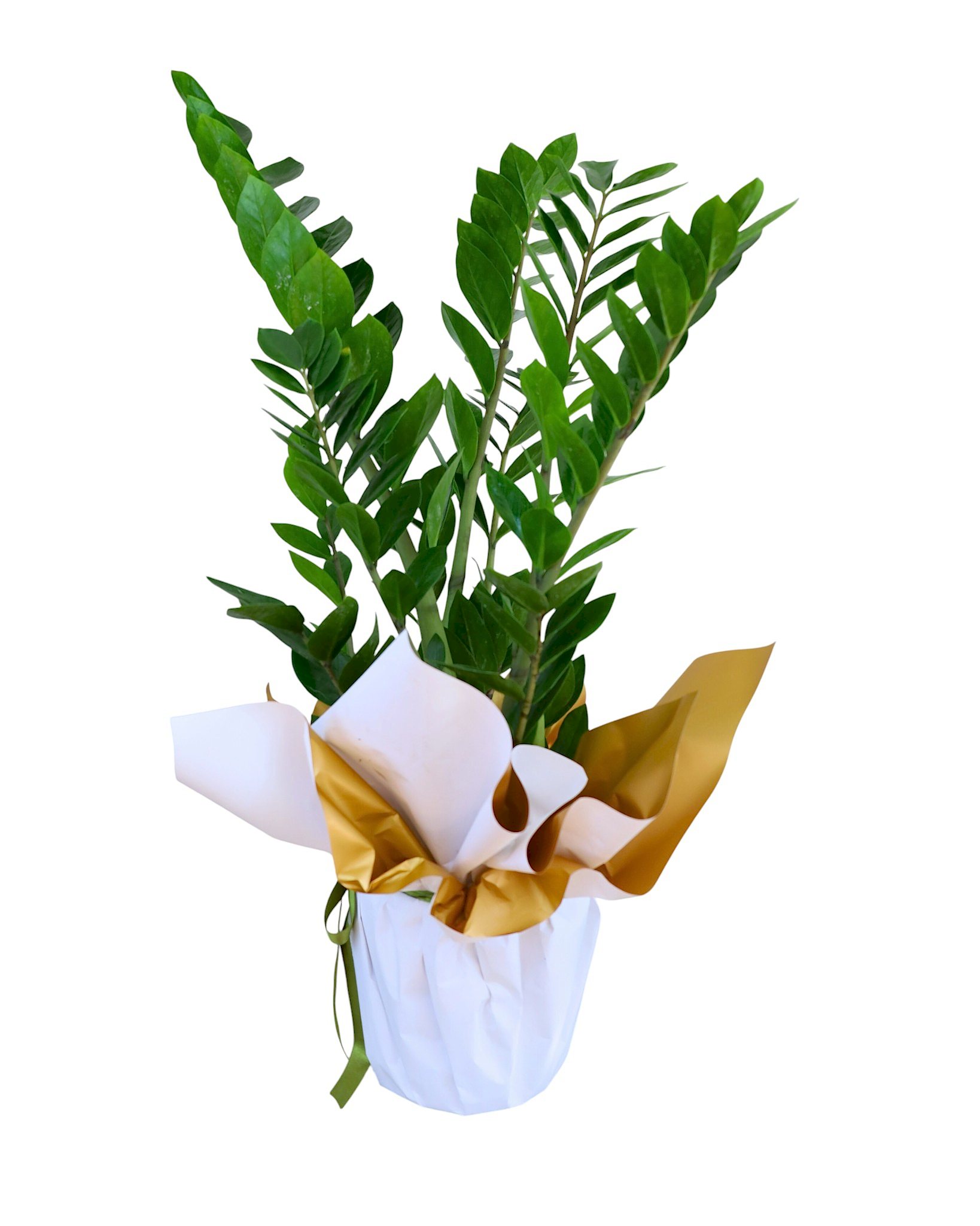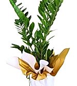 Pure Serenity Zambia, az ışıkta bile formunu koruyan, uzun ömürlü Zamioculcas zamiifolia (ZZ plant) ile hazırlanır. Güçlü gövdesinde su depoladığı için sulama aralığı uzundur; yeni başlayanlar ve yoğun ofisler için idealdir. Beyaz–altın ambalajıyla hediye etmeye hazır, zamansız ve şık bir seçenektir.